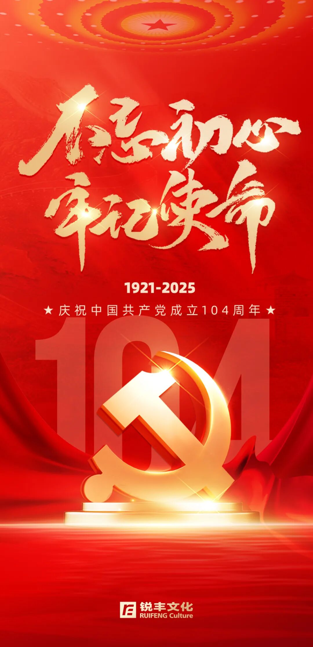從興業(yè)路的石庫門到天安門廣場(chǎng),從南湖紅船的啟航到新時(shí)代巨輪的破浪前行,中國(guó)共產(chǎn)黨用104年的崢嶸歲月,書寫了一部波瀾壯闊的奮斗史詩。值此建黨104周年之際,銳豐文化黨支部緊扣“紅色引領(lǐng),匠心逐夢(mèng)”主題,以一系列扎實(shí)舉措和生動(dòng)實(shí)踐,傳承紅色基因,踐行文化使命,向黨獻(xiàn)上最誠(chéng)摯的祝福。